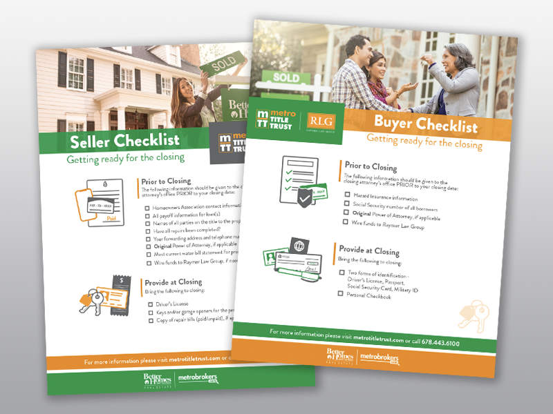 2-sided flyer features checklists for both buyers and sellers.