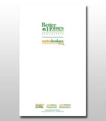 BHGRE Metro Broker two color logo on a legal size pocket folder.