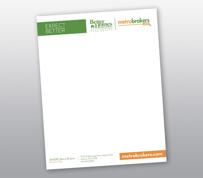 50 pieces of letterhead per pack with two color BHGRE Metro Brokers logo. Will be printed with your home office address
