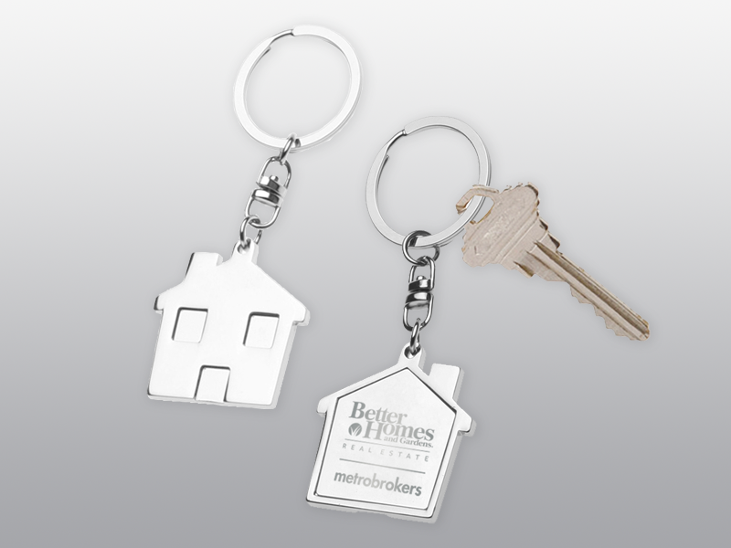 This unique mini house keychain is a great conversation starter! Made from high-quality, rust-resistant metal, these keychains feature the BHGRE Metro Brokers logo on one side, and the front of a house on the other.
