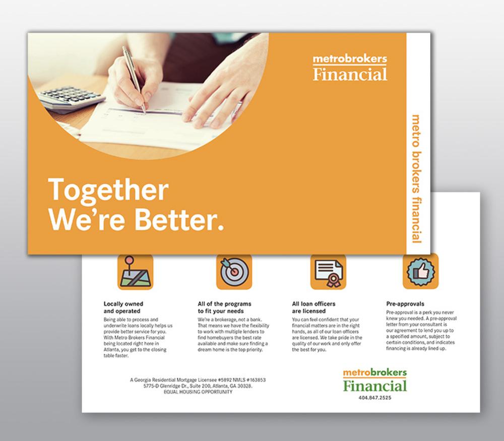 This information card introduces the Metro Brokers Financial services to potential clients.