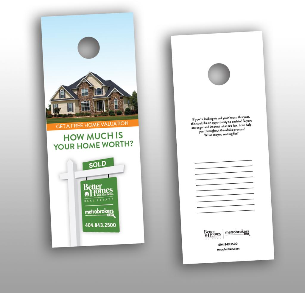 Die cut for business card and blank lines for sharing information about current listings by agent.