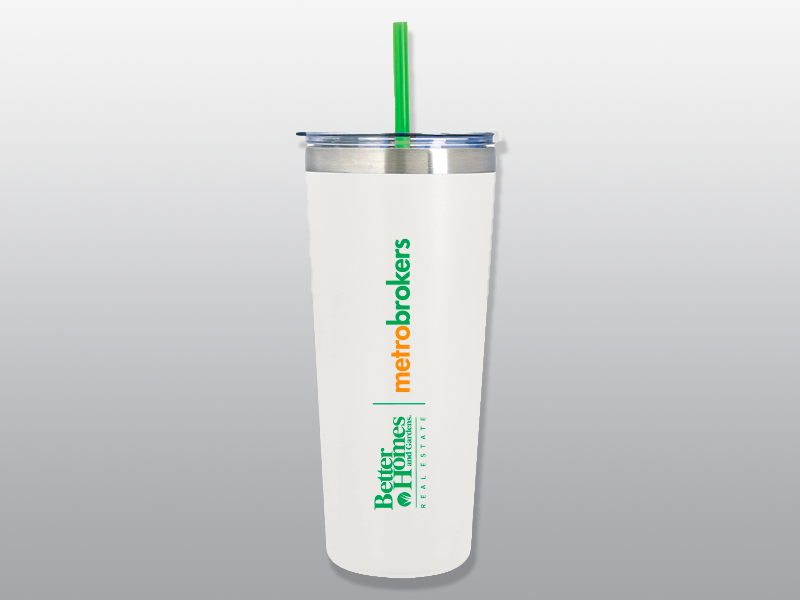 24 oz White tumbler with full color BHGRE Metro Brokers logo